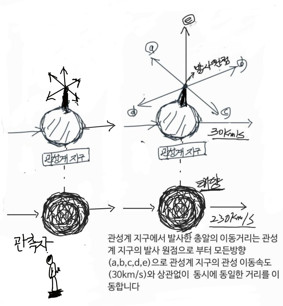 우주 모든 관성계(0-30만km/s)에서의 모든 빛의 속도(30만km/s)는 항상 일정합니다 >