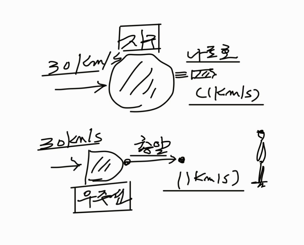 우주 절대 관성좌표계 (우주선)의 (우주 절대 (관성속도,(30km/s)가 더해져 있지 않습니다